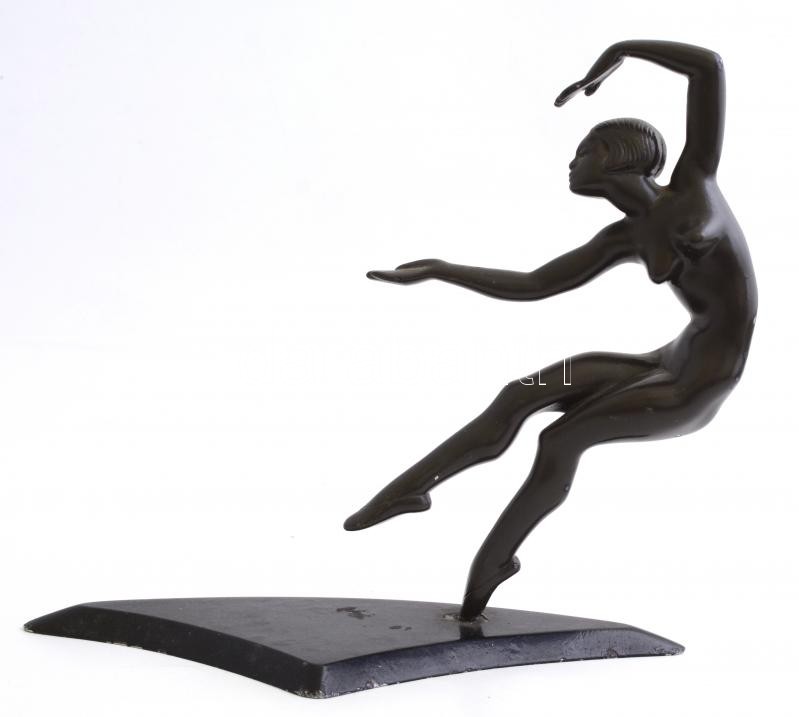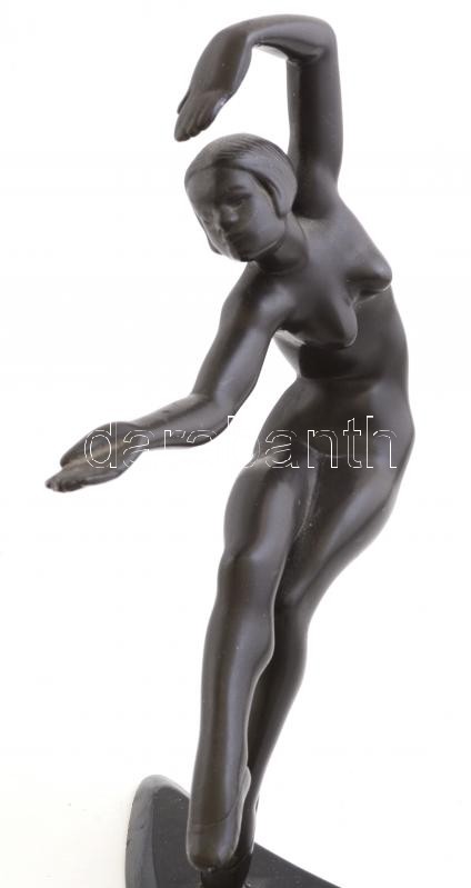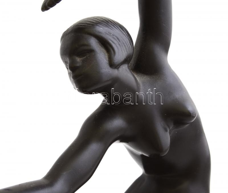 Art deco akt szobor, mozgatható talapzaton, kis kopásokkal, m: 26 cm