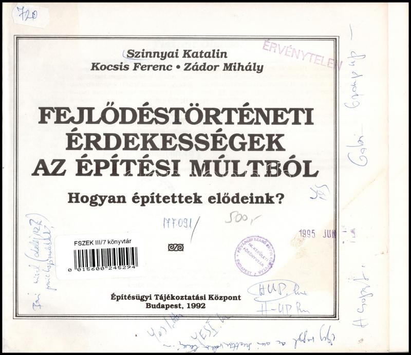 Szinnyai Katalin-Kocsis ferenc-Zádor Mihály: Fejlődéstörténeti érdekes... https://www.darabanth.com/en/390-Online-auction/390.0/Books/Books-Architecture-Art~1000006/Szinnyai-Katalin-Kocsis-ferenc-Zador-Mihaly-Fejlodestorteneti-erdekessegek-az-epitesi-mC3~II2327563