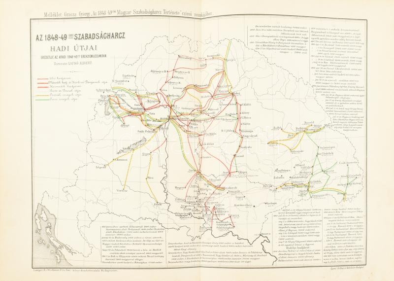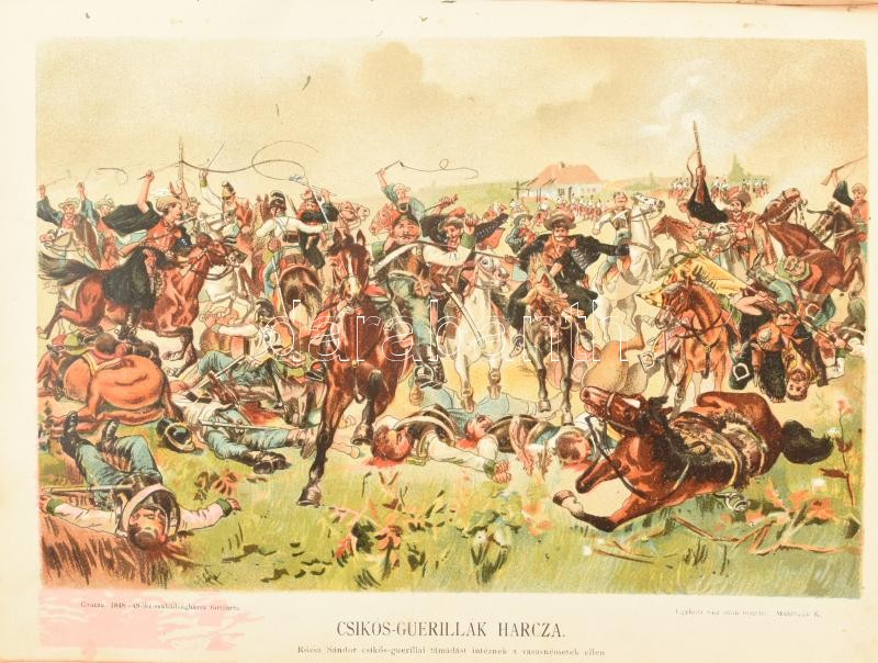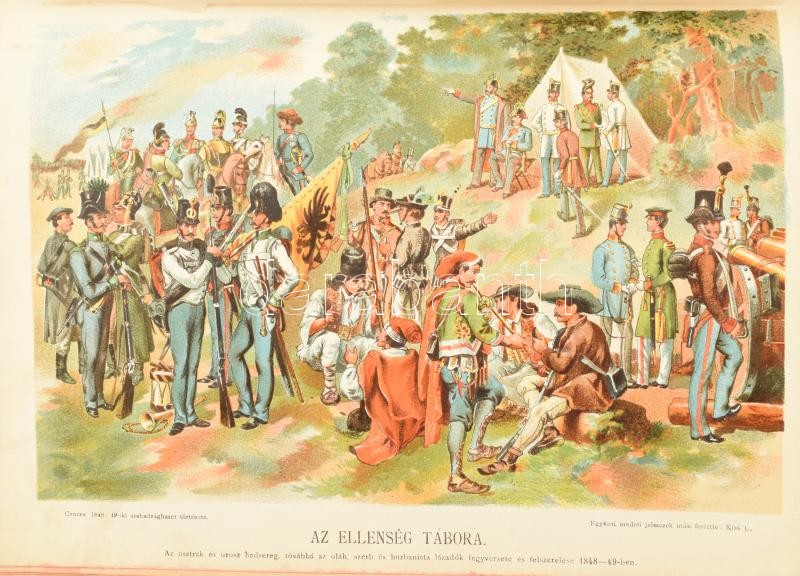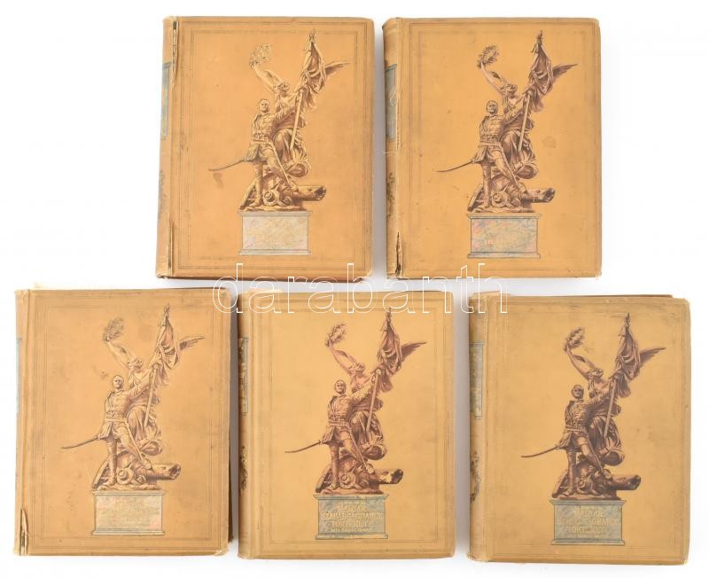 Gracza György: Az 1848-49-iki magyar szabadságharc története. I-V. kötet. Bp.,(1894-1898),Lampel R. (Wodianer F. és Fiai.) Számos fekete-fehér és színes illusztrációkkal, litografált táblákkal, hasonmás mellékletekkel. Kiadói aranyozott, dombornyomott egészvászon-kötés, Gottermayer-kötés, festett lapélekkel, kopott borítókkal, egy kivételével a gerinceken kis sérülésekkel, egy szakadt, sérült lappal, egy hiányzó táblával, a kötetek első lapjain nagyméretű tintafolttal. (Eltüntetett címer/ex libris?))
