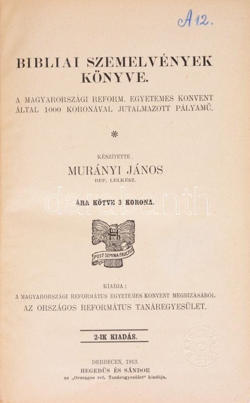 Murányi János: Bibliai szemelvények könyve. Kiadja: a Magyarországi Re... https://www.darabanth.com/en/390-Online-auction/390.0/Books/Books-Religion~1000020/Muranyi-Janos-Bibliai-szemelvenyek-konyve-Kiadja-a-Magyarorszagi-Reformatus-Egyetemes-Konve~II2350841