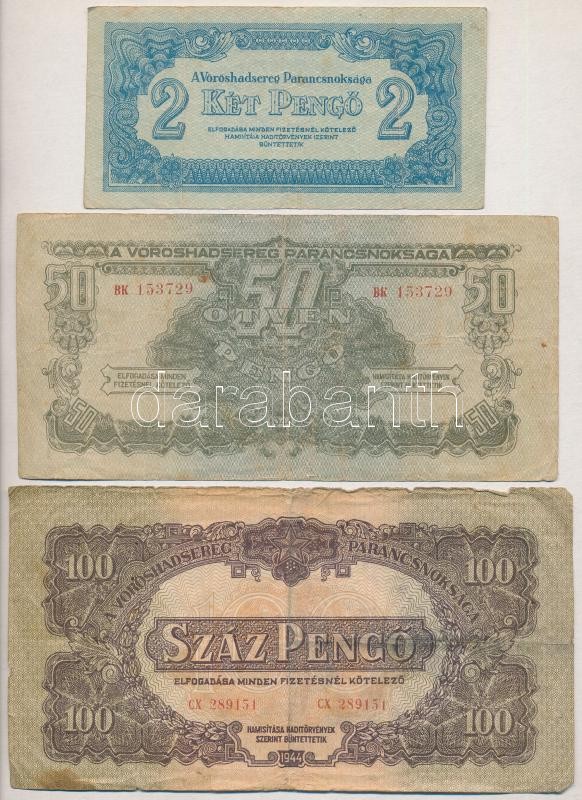 https://www.darabanth.com/en/390-Online-auction/390.0/Numismatics/Hungarian-Banknotes~2000007/1944-1P-100P-A-Voros-Hadsereg-Parancsnoksaga-6xklf-kozte-ketfele-1p-TIII-III-~II2350559