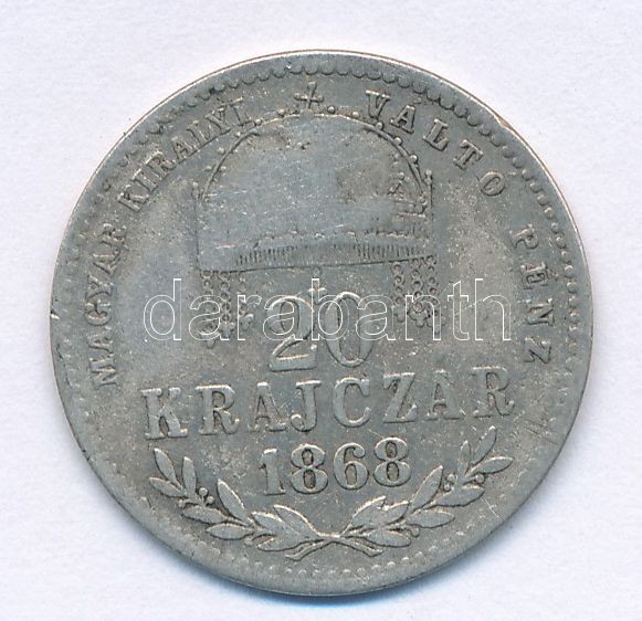 https://www.darabanth.com/en/390-Online-auction/390.0/Numismatics/Hungarian-coins-and-coins-with-Hungarian-mint-marks~2000008/1868KB-20kr-Ag-Magyar-Kiralyi-Valto-Penz-T3-Adamo-M111~II2331908