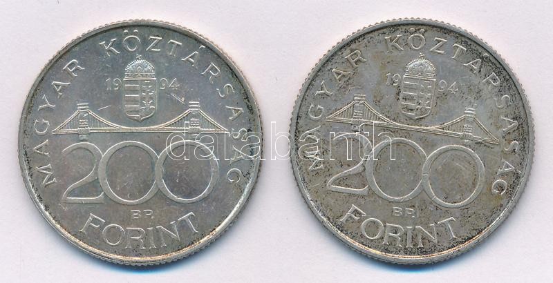 1994. 200Ft Ag "Deák" (2x) T:1- patina
