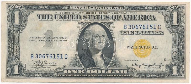 Description: Amerikai Egyesült Államok 1934-1945. (1935A) 1$ "Silver Certificate - kisméretű" sárga pecsét, "William Alexander Julian - Henry Morgenthau Jr." T:II