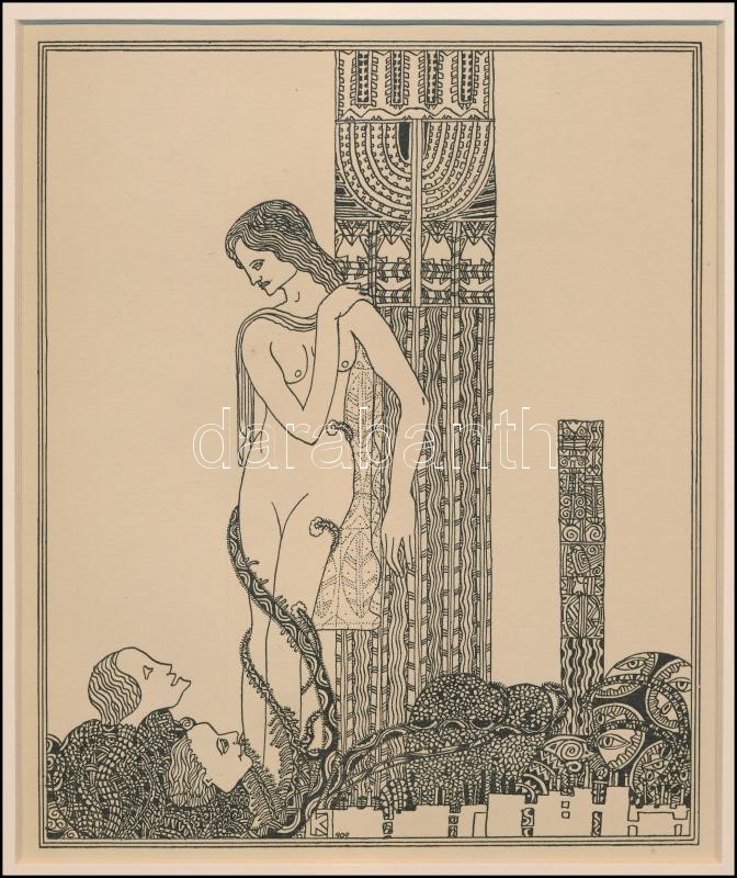 Kozma Lajos (1884-1948): Bálvány. Cinkográfia, papír, jelzett a cinkog...