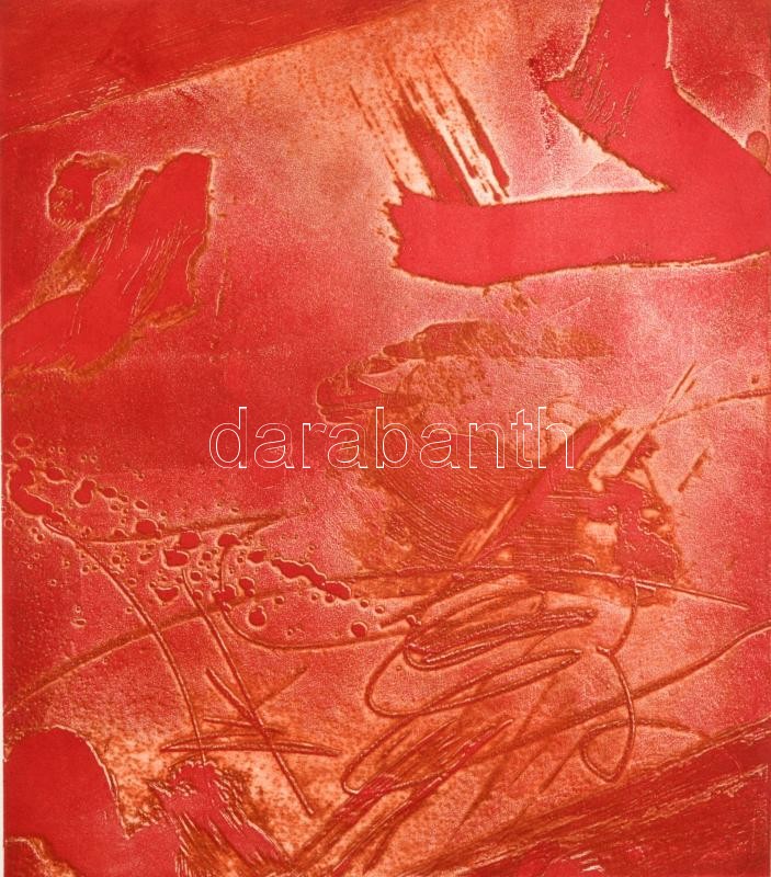 Pana Thuly (?-): Vörös világ (cím nélkül). Akvatinta, papír. Jelzett. ...