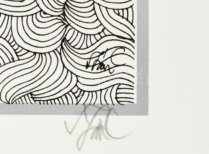 Szász Endre (1926-2003): Női arc (Emese). Szitanyomat, papír, számozott (39/100), jelzett, felcsavarva, kisebb törésnyommal, lap tetején kisebb szakadással, 40×35,5 cm + Szász Endre által tervezett plakát, Magyar Sízők egyesülete. Ofszet, papír, felcsavarva, kisebb gyűrődésekkel, 67,5x46 cm