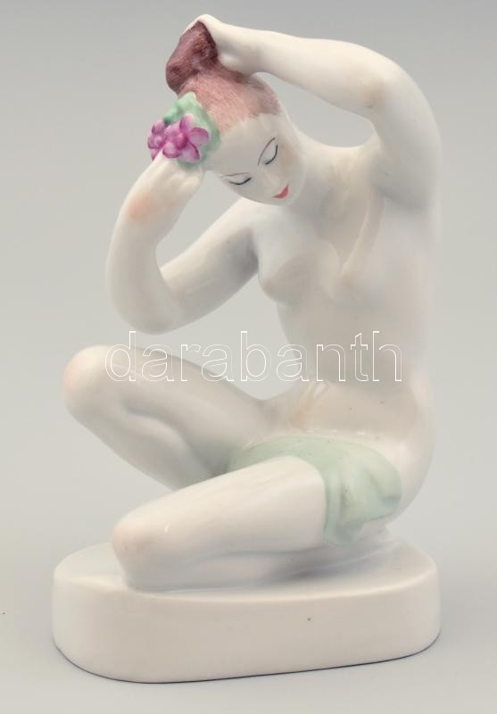 Aquincum porcelán térdelő akt, kézzel festett, jelzett, hibátlan, m: 1...