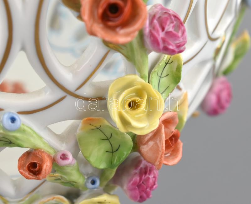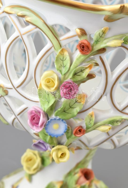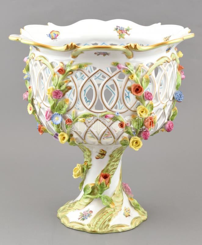 Herendi Viktória mintás nagy méretű, áttört asztalközép, kehely virágo...
