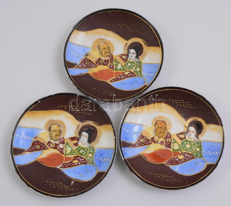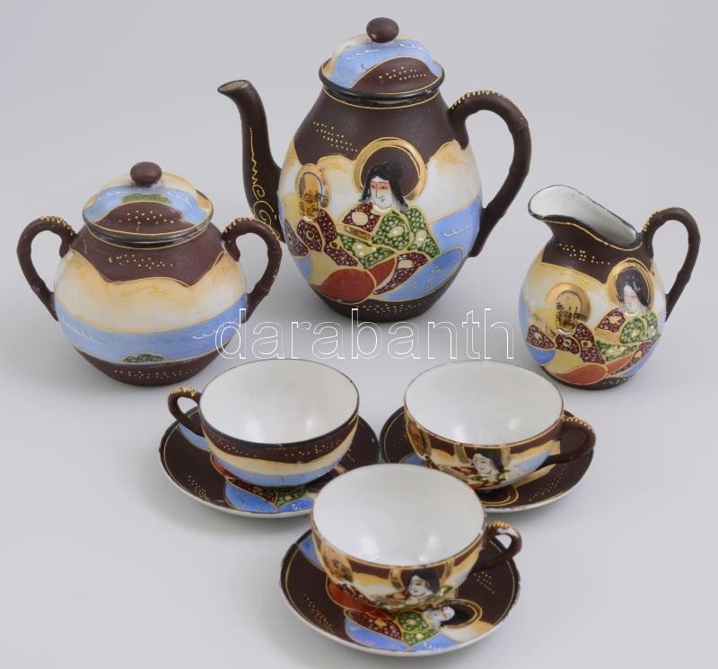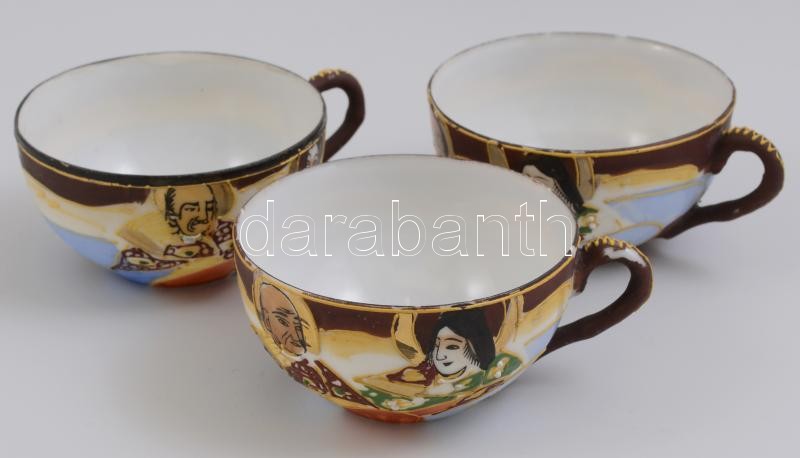 Szacuma jellegű mokkás készlet hiányos. Kézzel festett kis kopással. J...