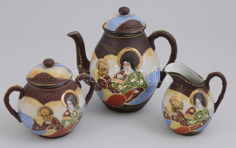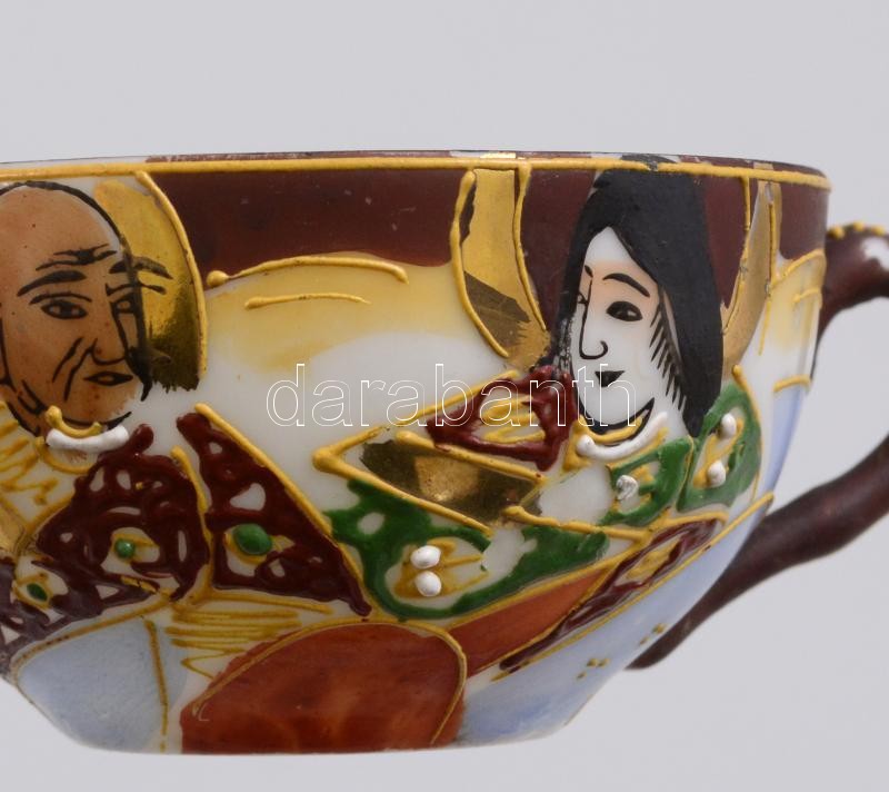 Szacuma jellegű mokkás készlet hiányos. Kézzel festett kis kopással. Jelzett.