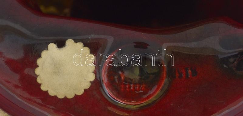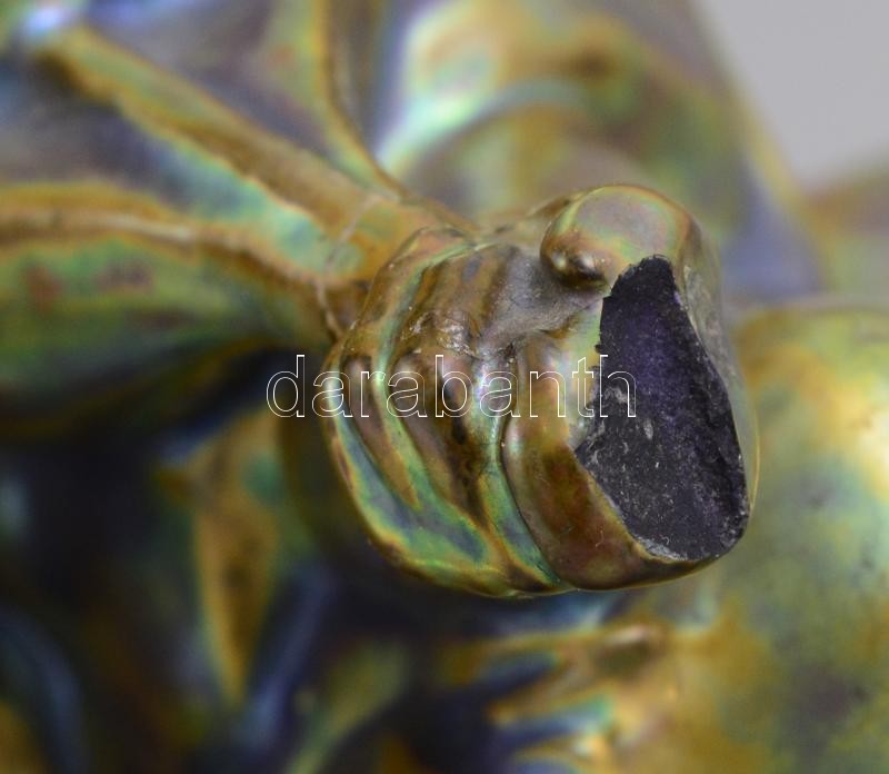 Zsolnay eozin mázas ülő hegedülő figura, jelzett (körpecsétes), sérült...