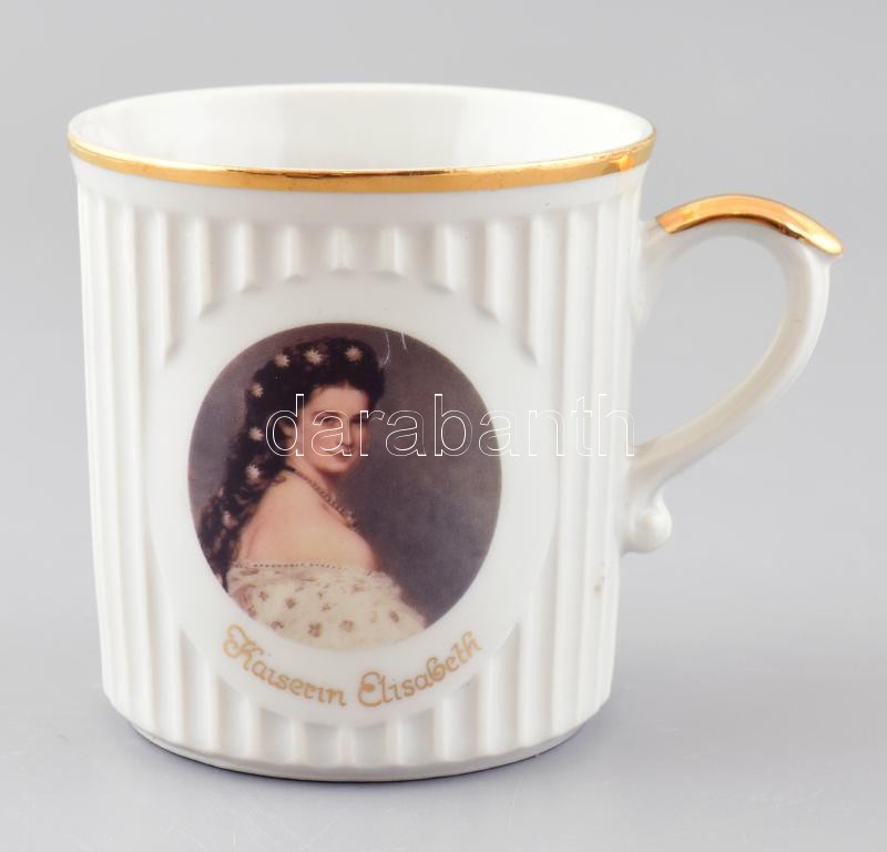 cca 1930 Ferenc József császár és Erzsébet (Sisi) császárné képével díszített porcelán emlék bögre. Matricás, jelzett, hibátlan. 8,5 cm