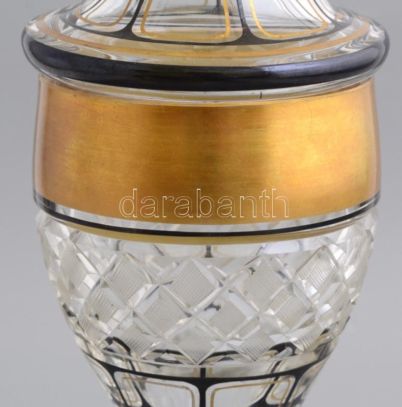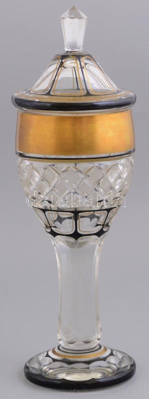 Talpas, fedeles, festett, aranyozott ólomkristály emlékpohár, metszett, hámozott, kis karcolásokkal, d: 9 cm, m: 31 cm