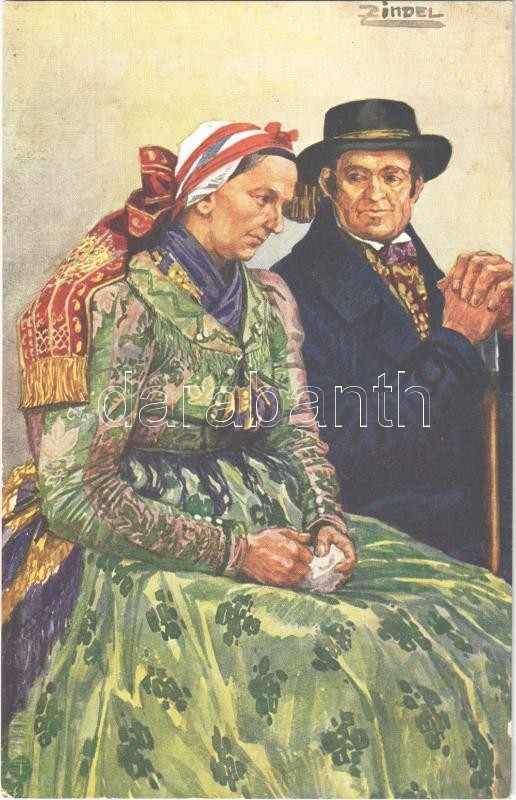 Egerländer (bei Karlsbad, Marienbad, Franzensbad). Österr.-ungar. Volkstypen Serie XXVIII/5. / Czech folklore art postcard s: Zindel