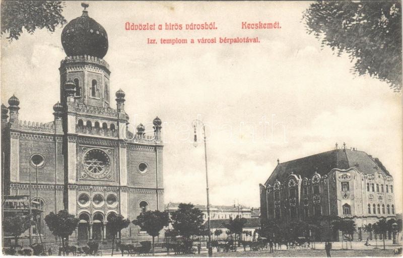 https://www.darabanth.com/en/390-Online-auction/390.0/Postcards/Hungary~1500004/1910-Kecskemet-Izraelita-templom-zsinagoga-varosi-berpalota-Politzer-Sandor-kiadasa-EK~II2350501