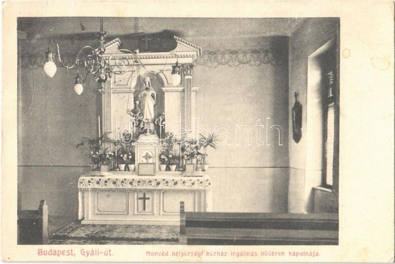 1913 Budapest IX. Ferencváros, M. kir. honvéd helyőrségi kórház irgalmas nővérek kápolnája, belső. Gyáli út 17. (Rb)