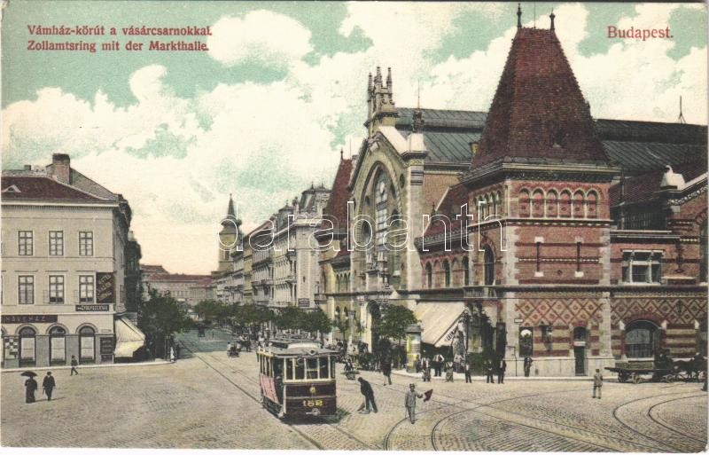 Budapest IX. Vámház körút, Vásárcsarnok, villamos, gyógyszertár, Nádor...