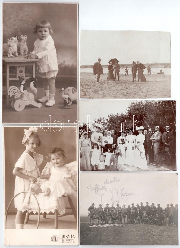 Description: 60 db RÉGI motívum fotó és fotó képeslap: családi, műtermi és portré, tenisz, vadász, Angol park, gyerek játékok / 60 pre-1945 motive photos and photo postcards: family, studio and portraits, tennis, hunting