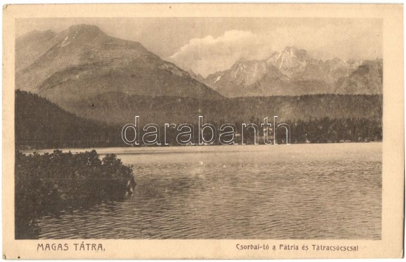 Tátra, Magas Tátra, Vysoké Tatry; Csorba tó, Pátria és Tátra hegycsúcs... https://www.darabanth.com/en/390-Online-auction/390.0/Postcards/Slovakia~1500007/Tatra-Magas-Tatra-Vysoke-Tatry-Csorba-to-Patria-es-Tatra-hegycsucsok-Turistasag-es-Al~II1910047