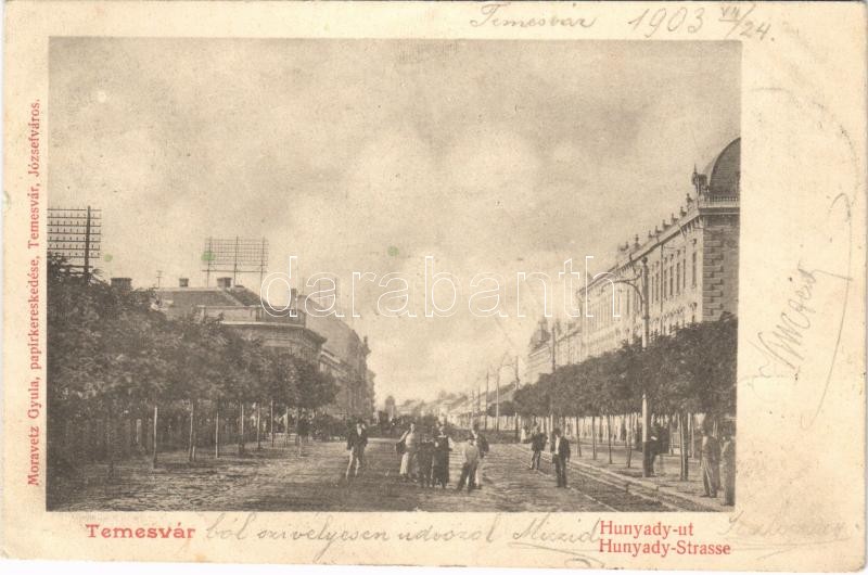 https://www.darabanth.com/en/390-Online-auction/390.0/Postcards/Transylvania~1500005/1903-Temesvar-Timisoara-Hunyady-ut-Moravetz-Gyula-kiadasa-street-EK~II2349909