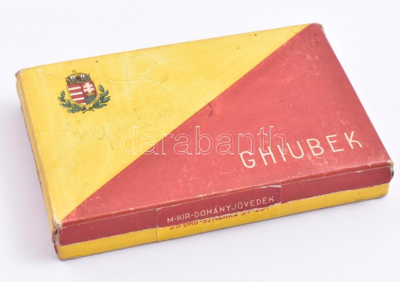 Ghiubek címeres papírdoboz, ceruzás ráírás nyomával, 7×11×1,5 cm