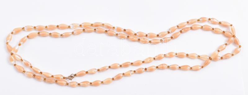 Retró üveggyöngy nyaklánc, h: 122 cm