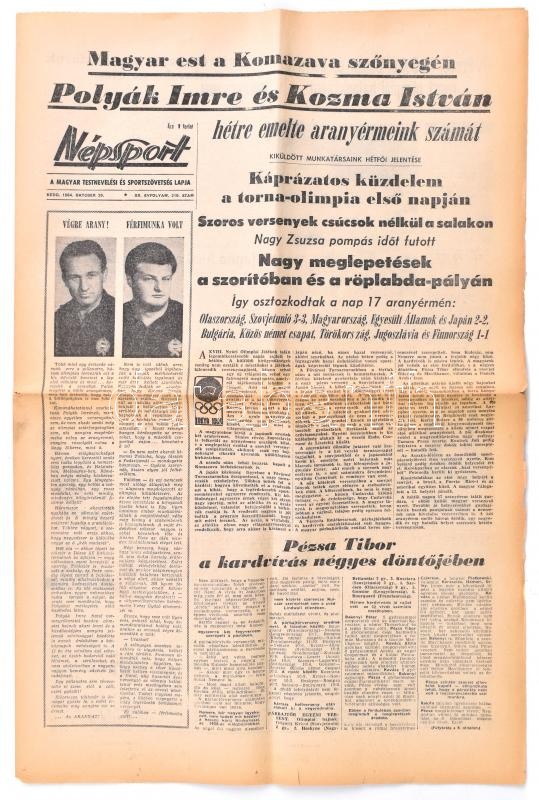 1964 Népsport 1964. okt. 20., XX. évf. 210. sz., 6 p. Benne a kor, a X... https://www.darabanth.com/en/391-Online-auction/391.0/Art-and-other-collectibles/Printed-Materials~500032/1964-Nepsport-1964-okt-20-XX-evf-210-sz-6-p-Benne-a-kor-a-XVIII-nyari-tokioi-olimpia~II2325038