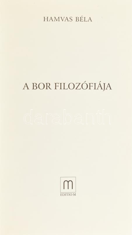 Hamvas Béla: A bor filozófiája. Szentendre, 2000., Editio M. Borvidékek Magyarországon térkép-melléklettel. Kiadói egészvászon-kötés,