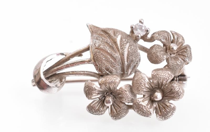 Ezüst (Ag) bross, markazittal, jelzett, 0,900, 5,68 g 3,5 cm