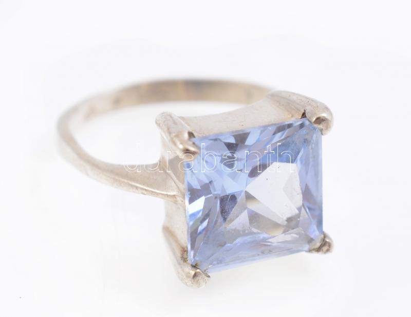 Ezüst(Ag) gyűrű, kék kővel, jelzett, méret: 53, bruttó: 4,05 g