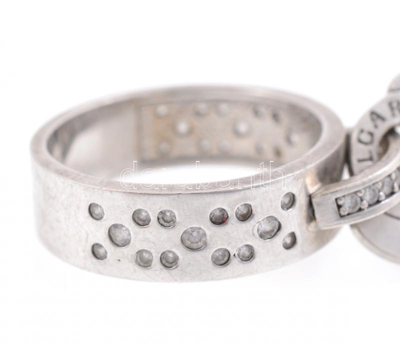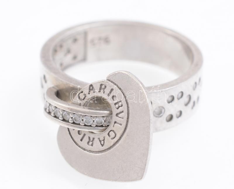 Ezüst(Ag) gyűrű, szíves díszítéssel, Bulgari jelzéssel, méret: 58, bru...