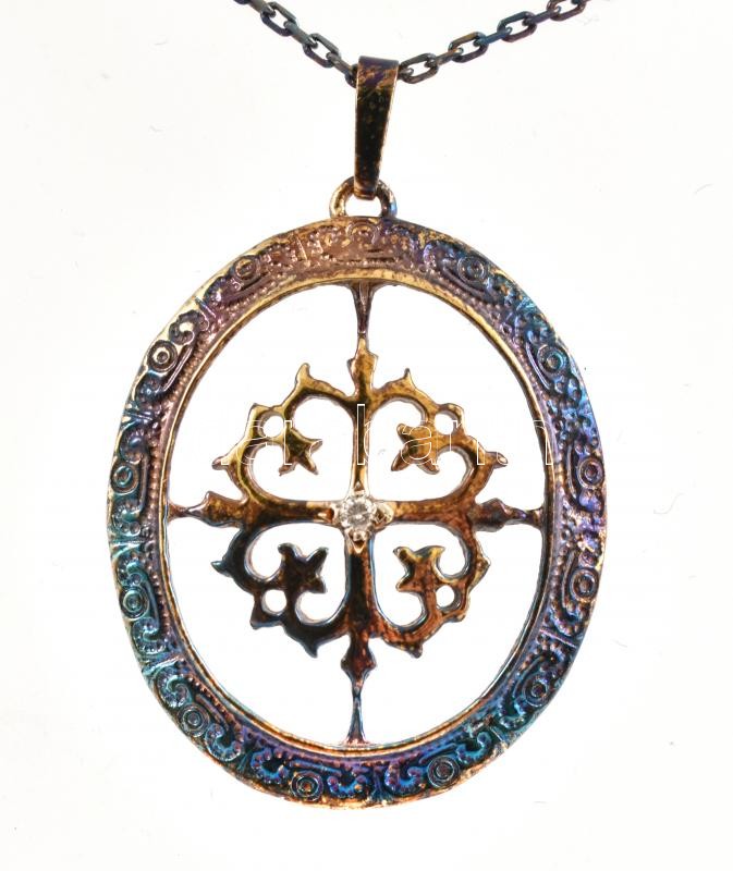 Ezüst(Ag) nyaklánc, 0,02 karátos briliánssal, jelzett, h: 44 cm, brutt...