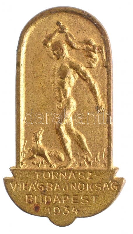 1934. "Tornász Világbajnokság Budapest" aranyozott Br gomblyukjelvény "Cserkészbolt V. N Sándor u.6." gyártói jelzéssel (30x16mm) T:2