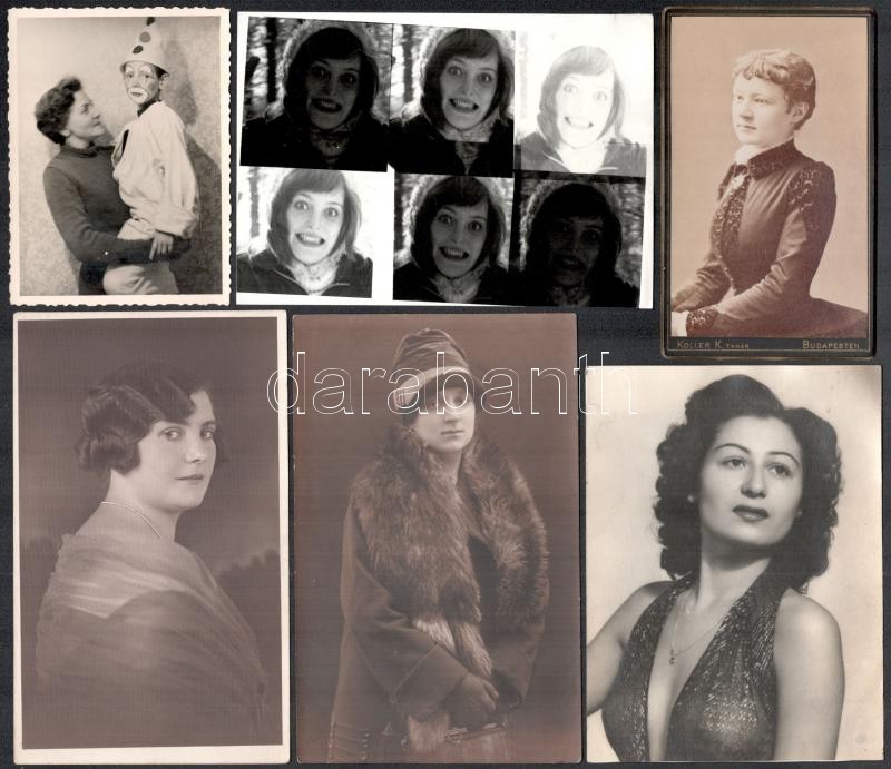 6 db érdekes fotó, klf korokból Koller műterem, montázs, bohócos fotó,...