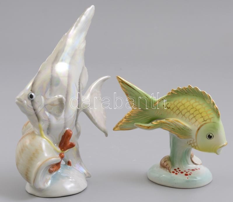 Drasche porcelán halak, 2 db, kézzel festett, jelzett, hibátlan, m: 8,5 és 15 cm