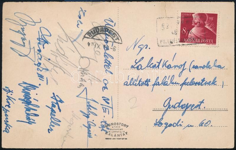 Az NTE által Lakat Károlynak küldött képeslap aláírásokkal