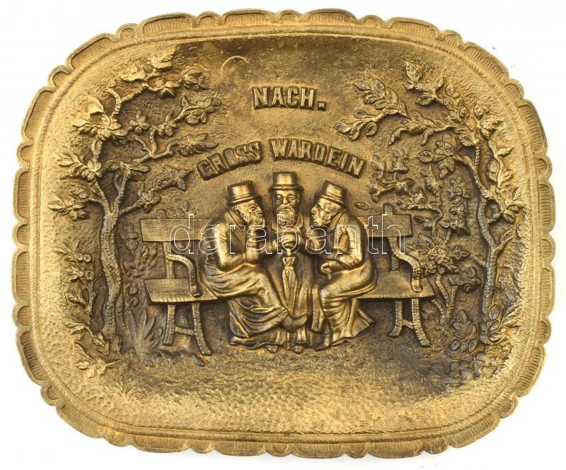 Nach Grosswardein (Nagyvárad felé, to Oradea) feliratos, figurális plasztikus réz tálka, jelzés nélkül, jó állapotban, 13x16 cm