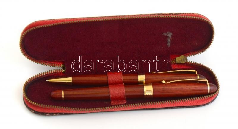 Régi tollak, 2 db, fa hatású testekkel, tokban, h: 13.5 cm, és 14 cm, tokban: 17x4x2 cm