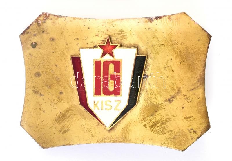cca 1970 KISZ Ifjú Gárda fém övcsat tűzzománc jelvénnyel, kis kopásnyomokkal, 5,5×8 cm