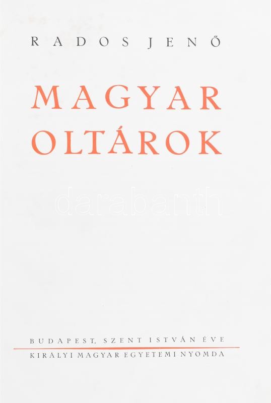 Rados Jenő: Magyar oltárok. Bp., 1938, Kir. M. Egyetemi Nyomda, 93+2 p... https://www.darabanth.com/en/392-Online-auction/392.0/Books/Books-Architecture-Art~1000006/Rados-Jeno-Magyar-oltarok-Bp-1938-Kir-M-Egyetemi-Nyomda-93plus2-pplusCLXXI-tplus2-p-Szovegkozt~II2375104