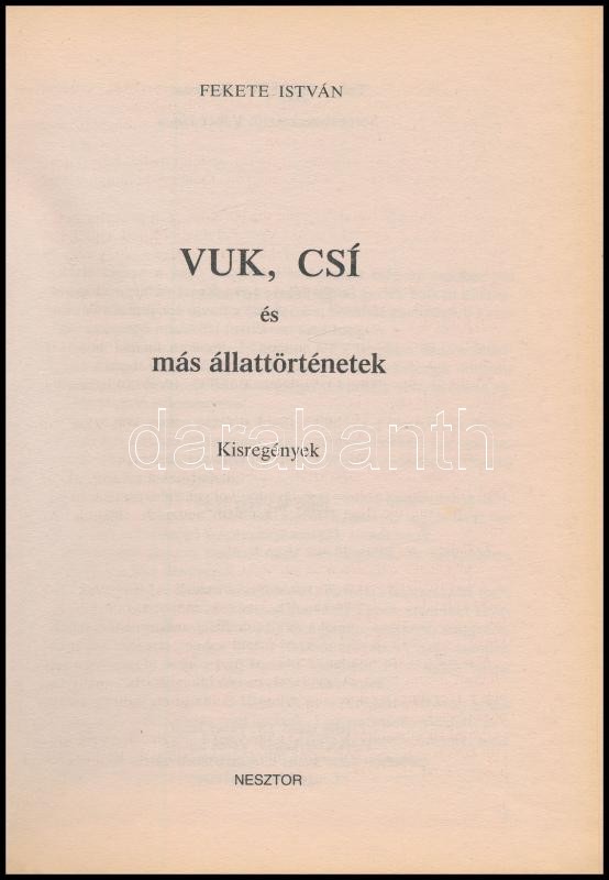 Fekete István: Vuk, Csí és más állattörténetek. Kisregények. Bp.,é.n.,Nesztor. Kiadói kartonált papírkötés.