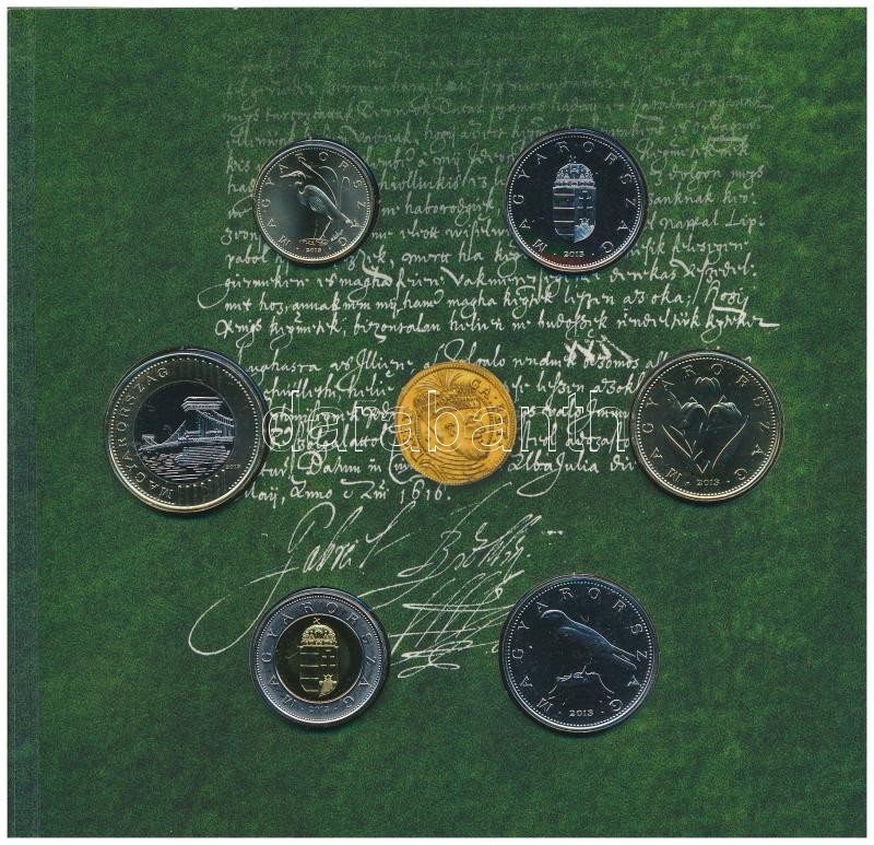 https://www.darabanth.com/en/392-Online-auction/392.0/Numismatics/Hungarian-coins-and-coins-with-Hungarian-mint-marks~2000008/2013-5Ft-200Ft-6xklf-forgalmi-sor-szettben-plus-2013-Bethlen-Gabor-aranydukat-aranyozott-Ag-je~II2036149
