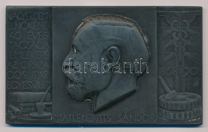 Beck Ö. Fülöp (1873-1945) 1908. "Matlekovits Sándor - Nagyérdemű elnökének 40 éves tagsága emlékére - Az Országos Iparegyesület" fém plakett (48x80mm) T:2