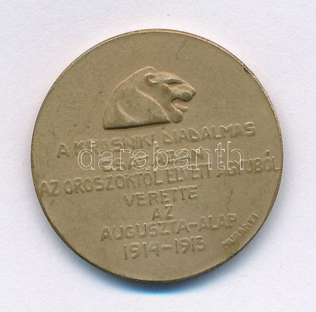 Description: Osztrák-Magyar Monarchia 1915. "A Krasniki diadalmas csatában az oroszoktól elvett ágyúból verette az Auguszta-Alap" Br emlékérem. Szign.: Murányi Gyula (21,5mm) T:2