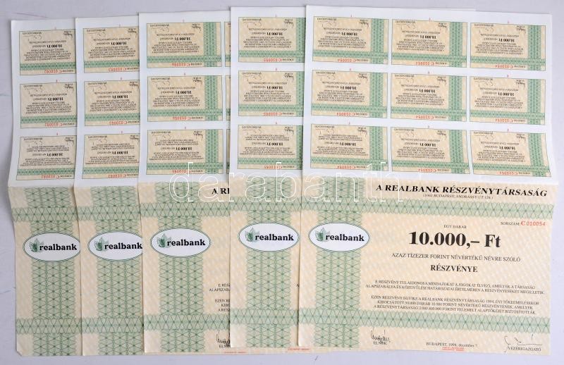 Budapest 1994. "A Realbank Részvénytársaság" 10.000Ft értékű részvénye szelvényekkel (5x) sorszámkövetők T:II,II-