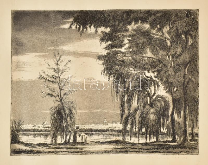 Olvashatatlan jelzéssel: Kis Duna. Rézkarc, papír, jelzett, 31×41 cm