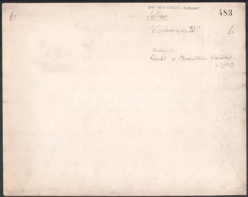 Description: 1934 Kinszki Imre (1901-1945) budapesti fotóművész hagyatékából, pecséttel jelzett és a szerző által feliratozott, vintage fotó (Budapesti Nemzetközi Vásár), 23,5x29,7 cm