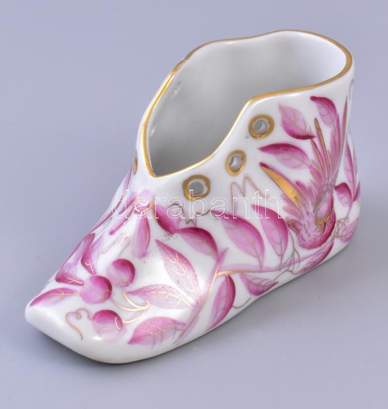 https://www.darabanth.com/en/392-Online-auction/392.0/Porcelain-ceramics-glassware/Chinaware-Porcelain~500006/Herendi-virag-es-levelmintas-cipo-kezzel-festett-hibatlan-jelzett-10x5-cm~II2374433