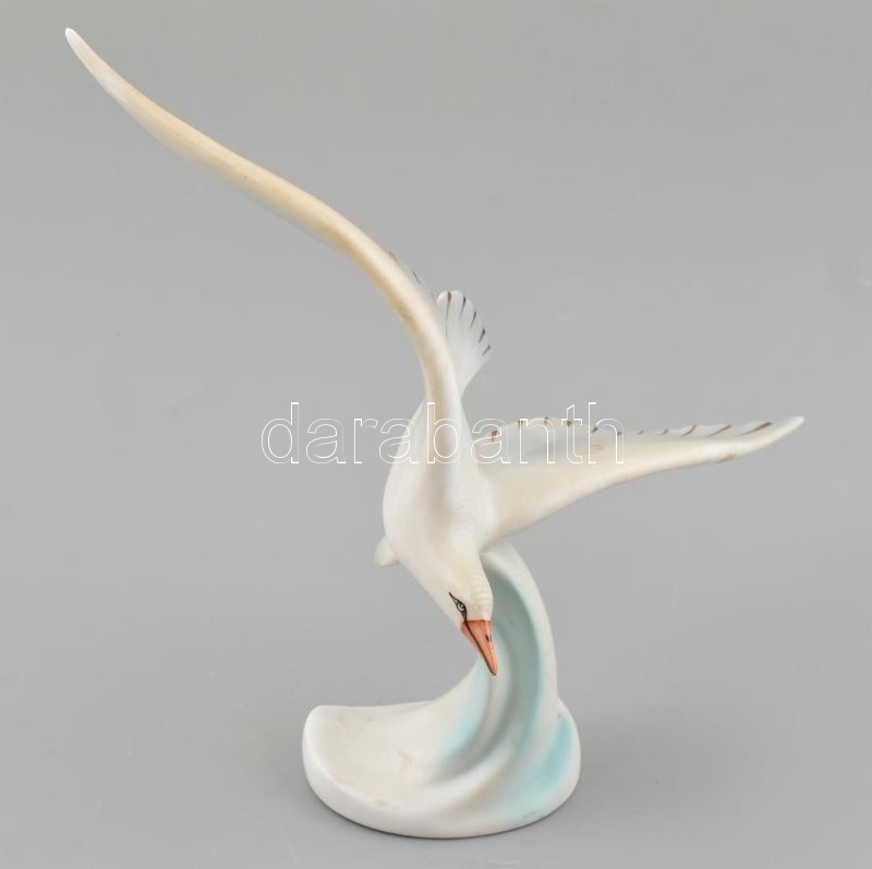 Hollóházi porcelán sirály, kézzel festett, jelzett, két helyen mázhibá...